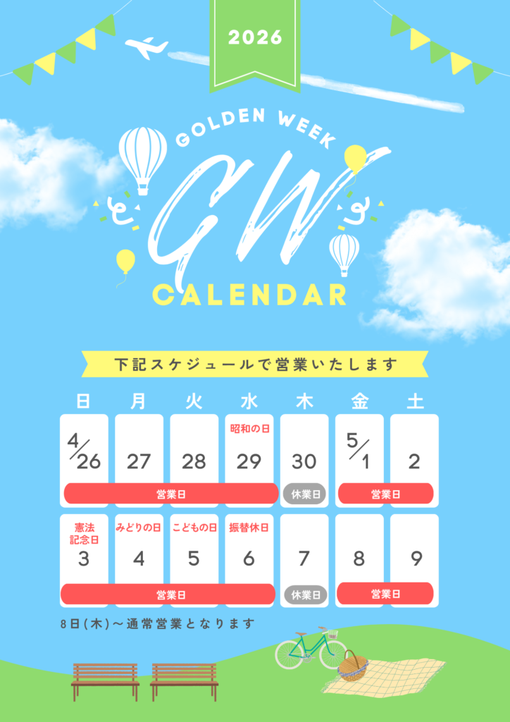 連休中の「何しよう?」に困ったらぜひ当店へ😊